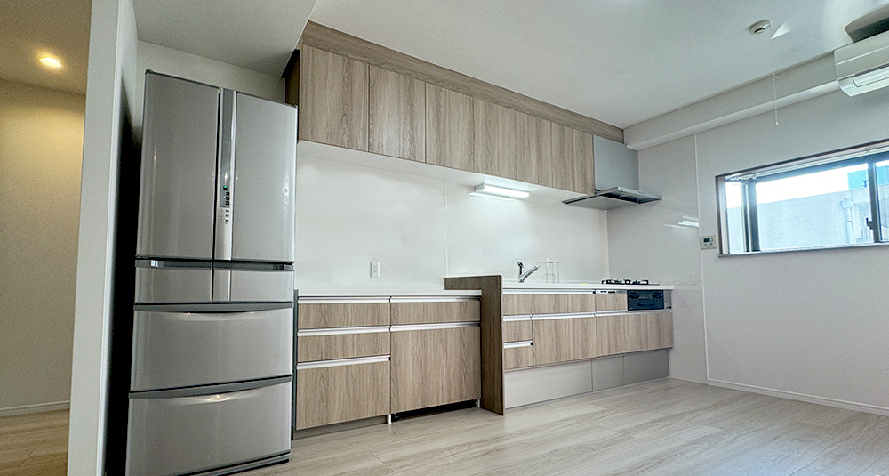 現在の環境に合わせ使い勝手を考えL字型からI型キッチンに変更し空間が広くなりました。